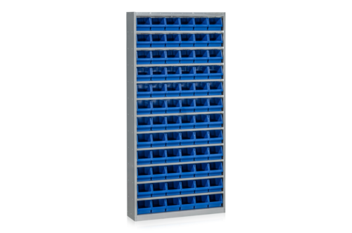 Schrank mit 72 Sichtlagerkästen Blau