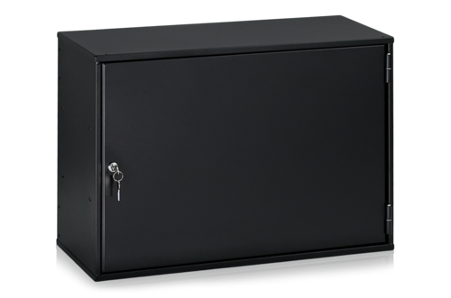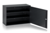 Praktischer Schrank mit zwei losen Einlegeböden. Kann an perforierten Säulen mit 670 mm/cm³ montiert oder direkt an die Wand geschraubt werden. Haken zur Säulenaufhängung sind im Lieferumfang enthalten.