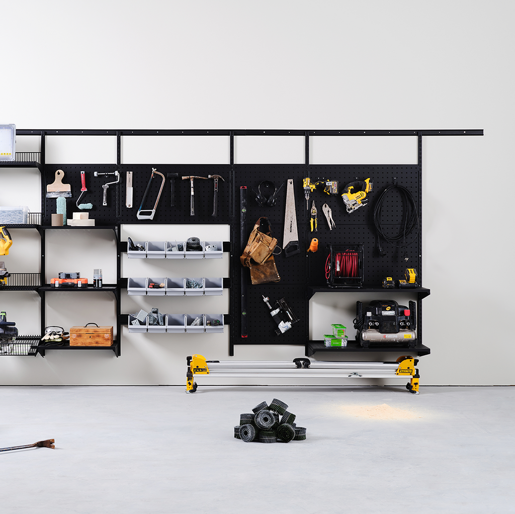 In unserem Garageneinrichtung-Sortiment finden Sie eine große Auswahl an allem, was Sie zum Bau Ihres eigenen Regalsystems benötigen. Unser Regalsystem besteht aus einer Reihe verschiedener Komponenten, die Sie ganz nach Ihren Wünschen und Ihrem Geschmack kombinieren können. Mit Wandschienen als Basis und verschiedenen Arten von Regalen, Schuhregalen, Rückleisten, Lochplatten, Hutablagen und Kleiderhakenleisten können Sie ein an Ihren Raum angepasstes System zusammenstellen. Alle Teile unseres Regalsystemes sind langlebig und eignen sich daher gut für alle möglichen Umgebungen. Warum bauen Sie nicht ein komplettes Regalsystem in Ihrer Garage oder Werkstatt? Hier finden Sie alle Möglichkeiten, eine maßgeschneiderte Lösung zu erstellen!
