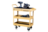 Der Werkstattwagen Homeworx ist ein flexibler Wagen auf Rädern, mit dem Sie sich während der Montage bewegen können. Der Wagen besteht aus pulverbeschichtetem Metall und verfügt über drei Ablagen. Unter der obersten Ablagefläche befindet sich eine abschließbare Box mit kugelgelagerten Erweiterungen. An einer kurzen Seite befindet sich eine kleinere Ablage mit Platz für Spraydosen oder Flaschen. Die obere Ablage mit gummierter Matte eignet sich hervorragend als Arbeitsfläche. Bitte beachten Sie, dass es sich bei den Maßen um die Gesamtmaße mit Griff und Seitenablage handelt.