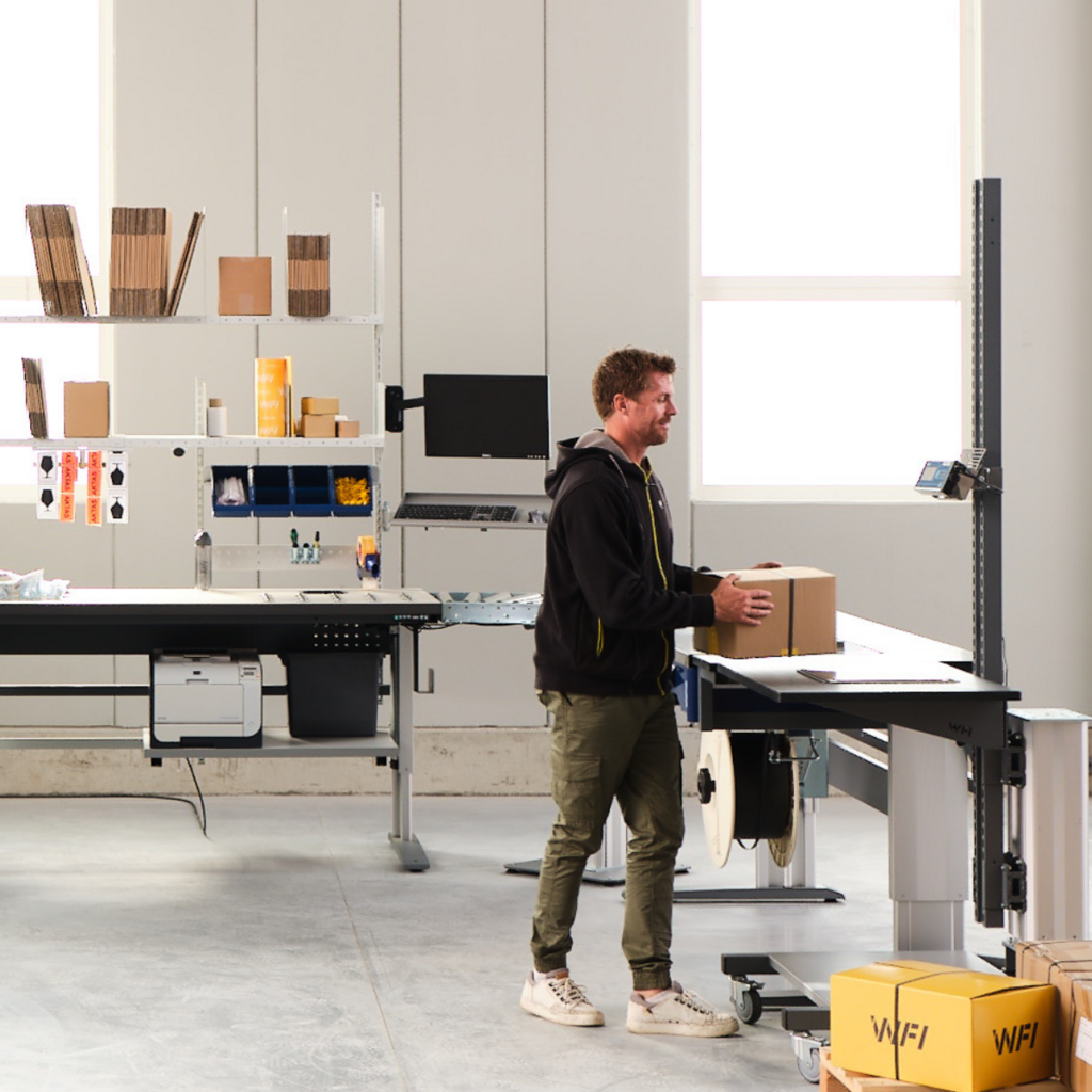 WFI entwickelt und vertreibt Arbeitsplatzlösungen, die Unternehmensabläufe und -erfolg verbessern. Mit unserem Konzept für die Arbeitsplatzgestaltung mit Schwerpunkt auf Arbeitsplätzen für Industrie und Lager unterstützen wir Unternehmen dabei, effizientere Abläufe zu schaffen, mehr Pakete zu verpacken und mehr Waren zu handhaben. Einfach cleverer arbeiten.