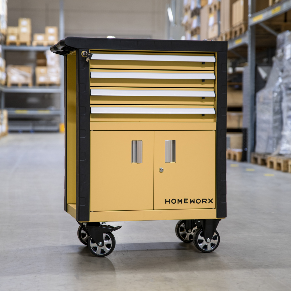 Schaffen Sie mit einem Werkzeugwagen von Homeworx einen mobilen und flexiblen Aufbewahrungsort für Ihre Werkzeuge. Hier haben Sie Platz für alle Werkzeuge, die Sie während der Arbeit benötigen, während sich der gesamte Inhalt bequem am Arbeitsplatz bewegen lässt. Neben den einfachen Wagen gibt es auch Komplettvarianten inklusive Werkzeug.