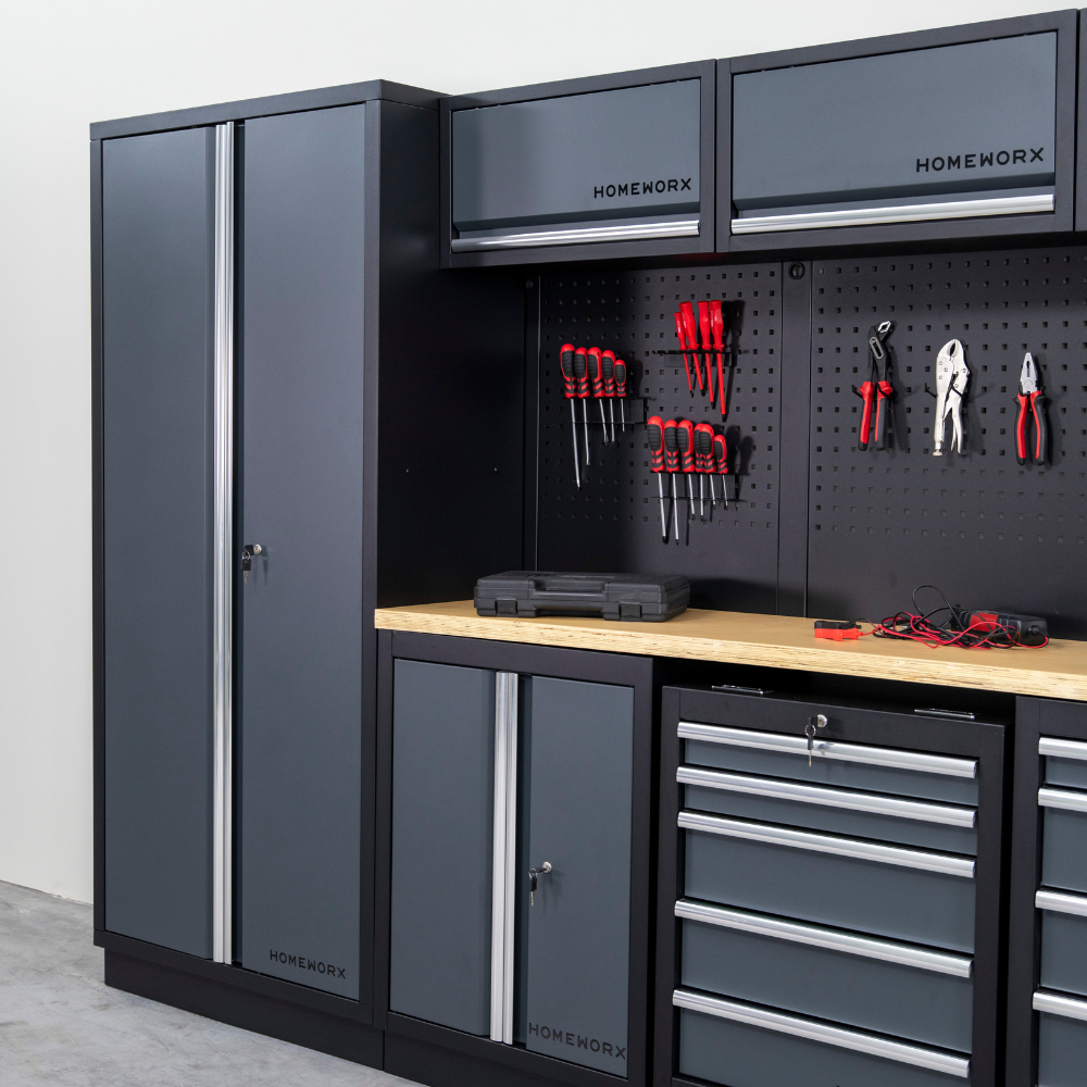 Wir präsentieren eine völlig neue Produktkategorie in unserem Sortiment – Garage und Werkstatt! In diesem Segment finden Sie alles für Garagen und Werkstätten, wie Garageneinrichtung, Garagenregale, Garagenausrüstung und Werkzeugwagen. Die Produkte werden unter der Marke Homeworx verkauft, die sowohl Heimwerkern als auch Unternehmen eine Welt voller Ordnung und Werkzeuge bietet. Entdecken Sie das gut sortierte Angebot an praktischen Lösungen von Homeworx und schaffen Sie die besten Voraussetzungen für zukünftige Projekte.