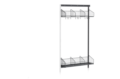 Bauen Sie mit Produkten von WFI ein einzigartiges Wandsystem! Einen großen Teil unseres vielfältigen Einrichtungssortiments für Umkleidekabinen und Garderoben macht unser flexibles Wandsystem aus. Das Wandsystem basiert auf Wandschienen, die direkt an die Wand geschraubt werden, oder L-Ständern oder T-Ständern, die auf dem Boden platziert werden, sowie optionalem Zubehör, das endlos kombinierbar ist. Hier haben Sie alle Möglichkeiten, maßgeschneiderte Kombinationen und platzsparende Aufbewahrungslösungen zu schaffen, für Umkleideräume und Garderoben sowie Büros und Industrieumgebungen. Entdecken Sie unsere Komplettkombinationen aus Wand- und Regalsystemen, hier finden Sie sowohl Unterteile als auch Ergänzungsteile in zahlreichen Sets mit diversem Zubehör. Unsere kompletten Kombinationen können direkt bestellt oder als Ausgangspunkt für das Hinzufügen weiterer Teile verwendet werden, ganz nach Bedarf und angepasst an Ihren Raum. Wünschen Sie weitere Informationen? Nehmen Sie gerne Kontakt mit uns auf!