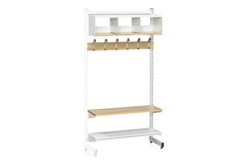 L-Ständer (Zusatzteil) für unser Standregalsystem. Wird an das Basisteil montiert. Vervollständigen Sie das Regal gerne mit zusätzlichen Abschnitten, verschiedenen Arten von Fachböden, perforierten Paneelen und Haken, um eine funktionale Aufbewahrungslösung für alle Arten von Umgebungen, zum Beispiel Garderoben, zu schaffen.