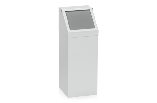 Praktischer und robuster Abfallbehälter aus Metall. Pulverlackiert in grauem Strukturlack (RAL 7037). Nach innen schwenkbarer Deckel. Einfache Entleerung durch abnehmbaren Deckel.Spezifikation - Abfallbehälter Einfach 50 l