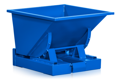 Robuster Kippbehälter zum Sammeln und Entsorgen von Schüttgütern und Produktionsabfällen. Geeignet für z.B. Verpackung, Metall, Holz und Abfall. Hergestellt aus 2 mm starkem vollverschweißtem Stahlblech. Pulverlackiert in blau (RAL 5005) für hohe Haltbarkeit und Schlagfestigkeit. Mittenabstand der Einfahrtaschen 395 mm und Einfahrtaschengröße 225x95 mm. Verfahrbar mit Hubwagen oder Staplern. Zur Entleerung wird die über eine Feder verbundene Platte an der Vorderseite des Rahmens gegen eine Kante gefahren und eingedrückt. Alternativ ist die manuelle Entleerung über einen seitlichen Griff möglich. Zur optimalen Entleerung, sollte der Container gleichmäßig und vollständig gefüllt sein. Kippbehälter sind CE gekennzeichnet und für die Belastungskapazität eingestuft. Kann mit Zubehör wie einem Deckel, Rollen und Recyclingaufklebern ergänzt werden.Spezifikation - Kippbehälter 150 l Blau