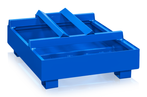 Auffangwanne für ein liegendes Fass. Auffangkapazität von 240 l. Verhindert das Kontaminieren von Flächen mit umweltgefährdenden Flüssigkeiten durch Auffagen in der Wanne. Robuste Stahlblechkonstruktion, für maschinelle Handhabung geeingnet. Die Auffangwanne ist pulverlackiert in blauer Farbe. Die Auffangwanne kann mit 150 mm Nylonrollen ausgerüstet werden.Spezifikation - Auffangwanne für 1 Fass liegend