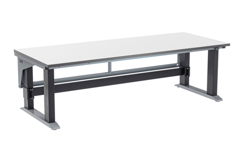 Powerful motorized workbench with four columns. A sturdy workbench designed with four columns, providing extra stability for tasks requiring a strong and steady work surface. The workbench features an extensive stroke range of 610-1270 mm, making it highly adaptable and ideal for varying working positions. The height is easily adjusted with a small table control which is mounted to either side of the table top, the lifting speed is 38 mm/s unloaded. The table stand is made of lacquered steel which is resistant to both corrosion and wear, while the surface becomes dirt-repellent. Load capacity 280 kg distributed weight.