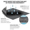 Schutzmatte aus Textil mit selbsthaftende Unterseite für Arbeitsplatten. Einfaches und schnelles Verlegen und Entfernen auf vielen verschiedenen Arten von glatten Oberflächen ohne zusätzliches Klebemittel. Die Matte bildet eine strapazierfähige und schallabsorbierende Oberfläche, die stoßempfindliche Gegenstände schützt. Das Textilmaterial ist saugfähig und kann verschiedene Arten von Flüssigkeiten wie Wasser, Fett und Öle aufnehmen. Die absorbierende Schicht besteht aus 100 % recyceltem Polyester. Temperaturbereich: 13° - 49°C.